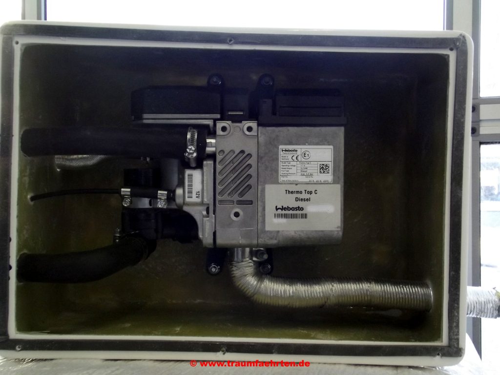 - Eingebaut wurde eine Webasto Thermo Top C Typ Caravan mit einer Leistung von 5,2 Kilowatt.